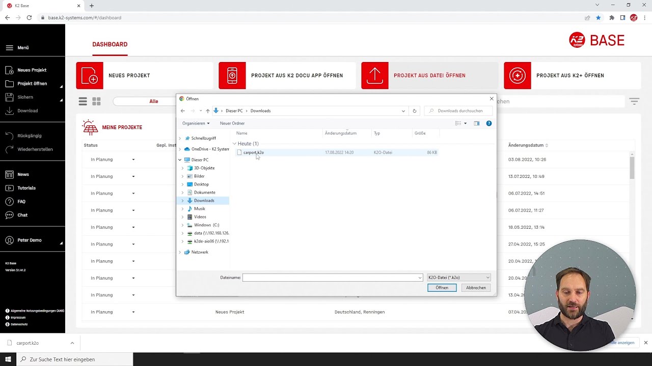 In diesem Video zeigen wir, wie man die Projektdatei von K2 Base im k2o Format herunterladen kann und nennen erste Ansätze, was man damit machen kann – z.B. per E-Mail mit anderen Benutzern teilen.